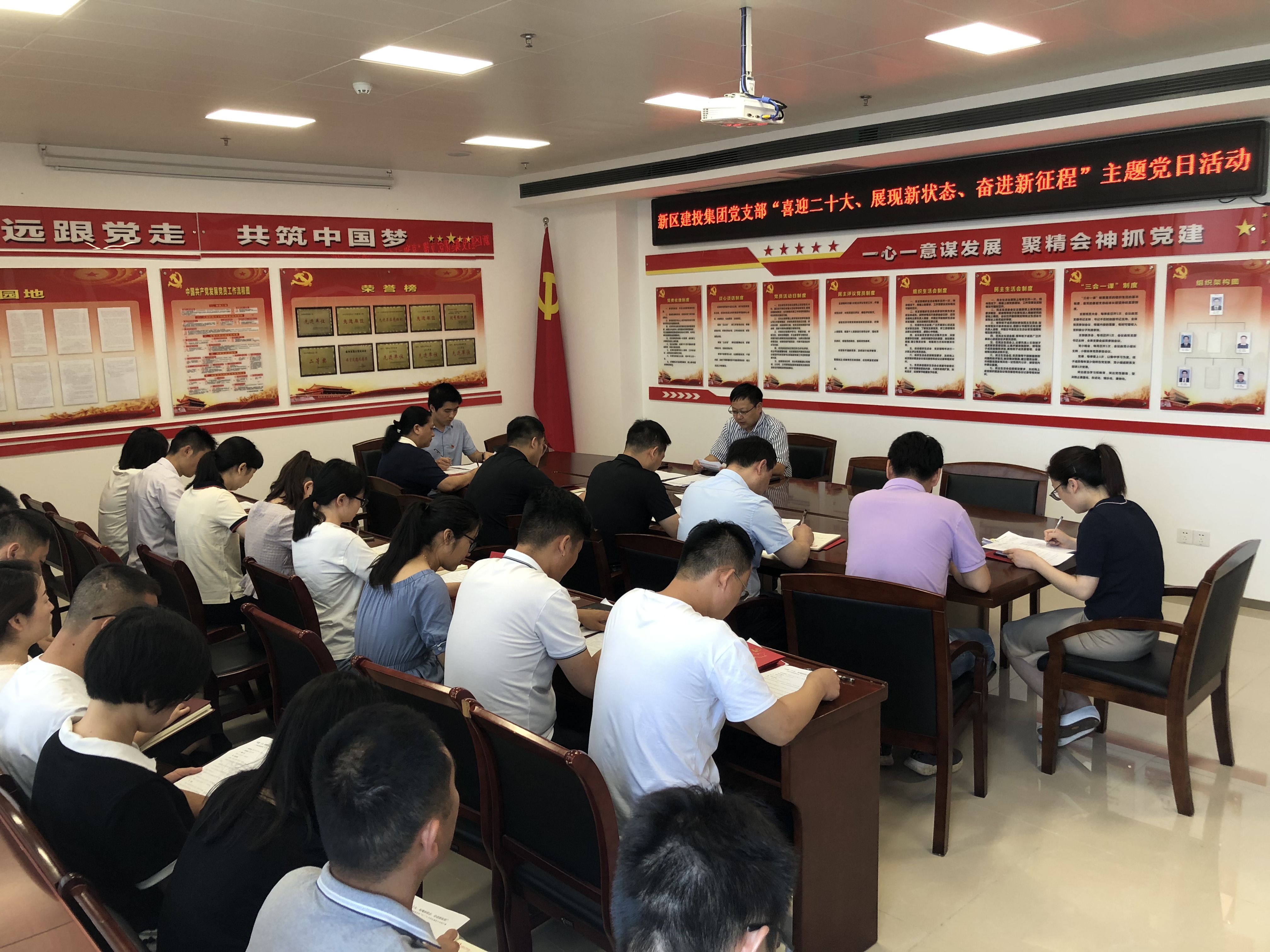 為迎接黨的二十大,迎“七一”慶祝建黨101周年,深入學(xué)習(xí)貫徹習(xí)近平新時(shí)代中國(guó)特色社會(huì)主義思想,6月24日,市新區(qū)建投集團(tuán)黨支部開(kāi)展“喜迎二十大、展現(xiàn)新?tīng)顟B(tài)、奮進(jìn)新征程”主題黨日活動(dòng),集團(tuán)公司黨支部書記、副總經(jīng)理姚海濱主持活動(dòng),全體黨員參加活動(dòng)。