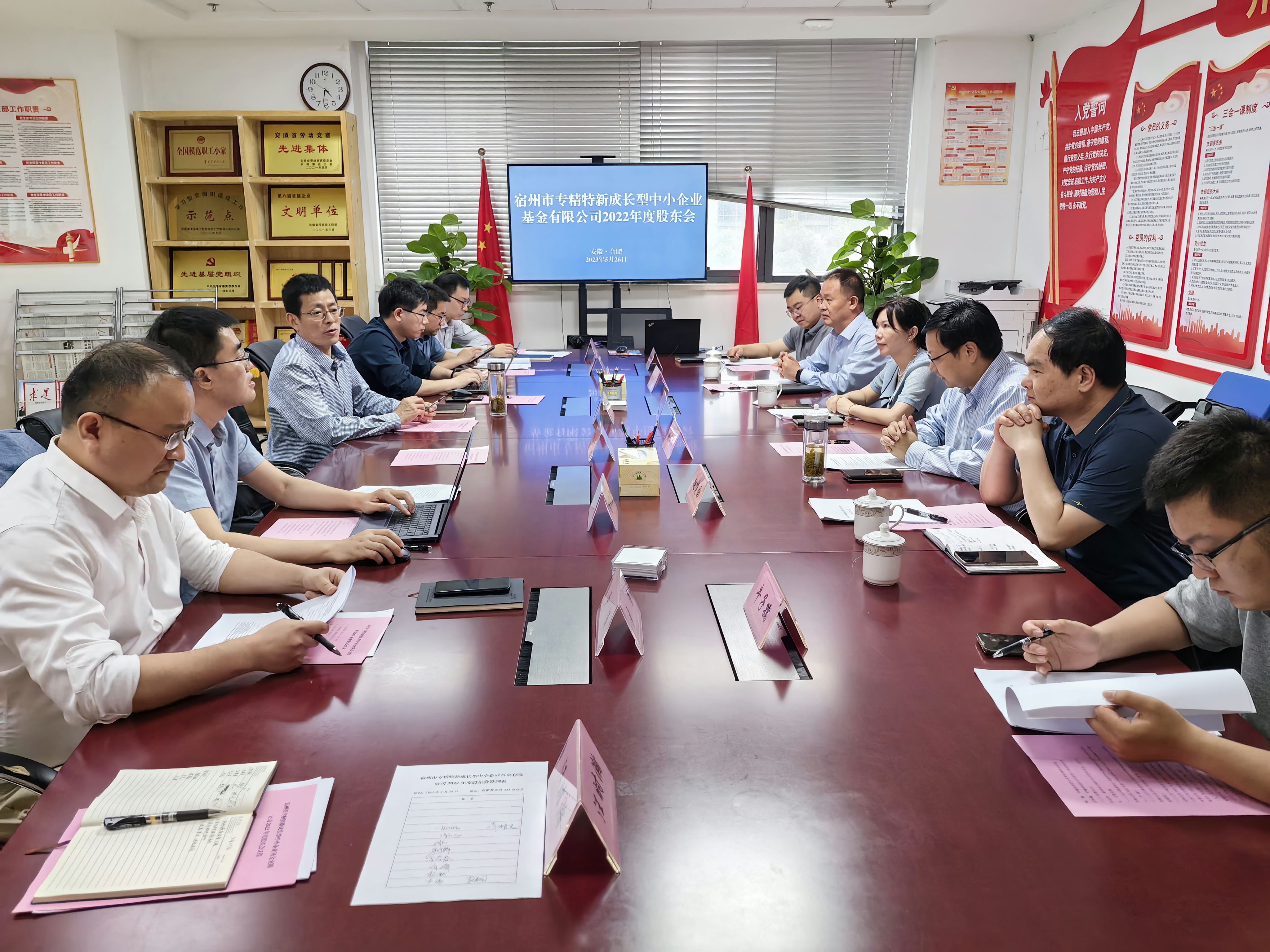 2023年5月26日,宿州市專精特新成長(zhǎng)型中小企業(yè)基金有限公司2023年股東會(huì)議在省高新投成功召開(kāi),基金各股東、管理人及托管行主要領(lǐng)導(dǎo)出席會(huì)議。
