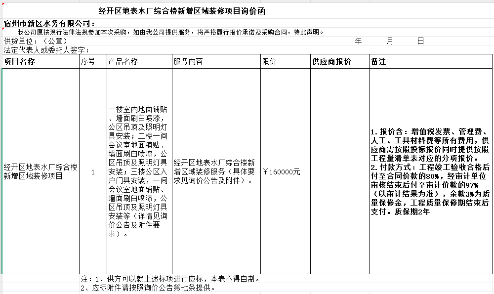 ?經(jīng)開區(qū)地表水廠綜合樓新增區(qū)域裝修項(xiàng)目詢價(jià)公告