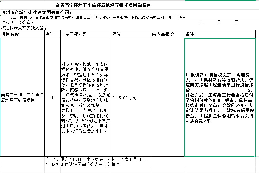 ?商務寫字樓地下車庫環(huán)氧地坪等維修項目詢價公告