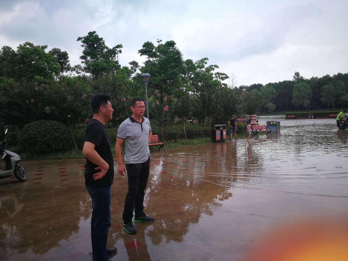 受連日暴雨影響,經(jīng)開區(qū)多處路段及企業(yè)內(nèi)出現(xiàn)積水內(nèi)澇,帶來不同程度的災(zāi)情險情隱患。馮國強一行冒著泥濘,視察了沱河、鐵路運河、老沱河等處河水水位情況,要求相關(guān)負責人深入排查安全隱患,及時掌握雨情、水情、汛情,建立暢通的聯(lián)系渠道,尤其是在暴雨期間要加強巡查,確保防汛工作萬無一失。